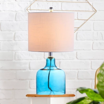 The bottomless bell jar shape of this small-scale table lamp, combined with a classic linen drum shade, create a compelling blend of traditional and contemporary design that is well suited to a variety of design styles. Hued in a bright turquoise, the eye-catching color and clean lines of this light fixture will add a fashionable and functional touch to any home. In addition to enhancing your space with its chic design, you can rely on this lamp to last — it’s chrome hardware and UL-rated electrical components make it built to illuminate memories for years to come.