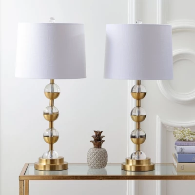 - Crystal and brass spheres stack to create a modern effect when accented in brass