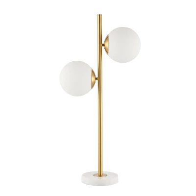 - This Art Deco-inspired orb table lamp has a brass finish and frosted glass globes for bright ambient light.