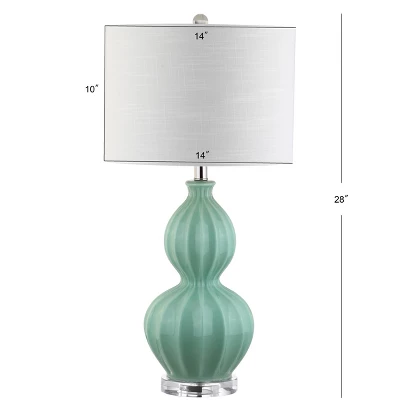 - Fluted glass gourd table lamp in seafoam green.