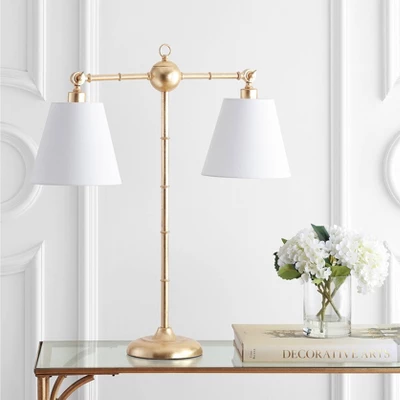 Like Lady Justice’s scale, the two-light library light stands in perfect balance. Though instead of weighing support and opposition in equal measure, this table lamp balances two shaded bulbs, providing ample light to your law school reading or picture frames on a sideboard. At 31″ high, the tall stature of this lamp would be excellent on an end table between two arm chairs, providing adequate light to both readers; on a desk, or above curios on a sideboard or buffet.
