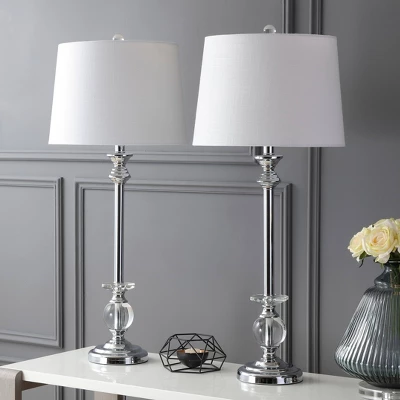 - Chrome table lamp with crystal accents designed to blend seamlessly with any décor style