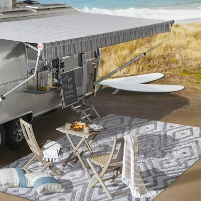 Inspired by vintage Moroccan rugs, our indoor/outdoor rug adds modern style to your porch, patio or sunroom. The classic Moroccan pattern has a geometric design of navy diamonds, dots and zigzags. Mingled threads give this rug a handwoven, vintage vibe that’s perfect for an entry, kitchen, hallway, living room or bedroom too. The pet-friendly and kid-proof flatweave design makes it easy to clean, and perfect for the beach house.