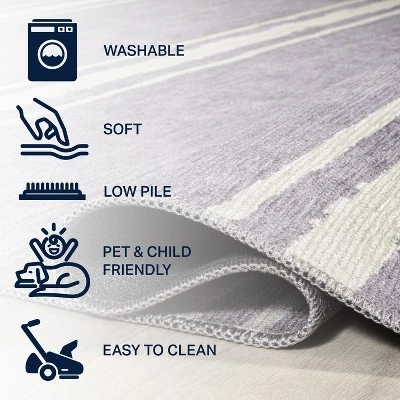 Our distressed ticking stripe rug adds modern style to a country cottage or modern farmhouse. The wide-spaced stripes have soft edges for a handcrafted look. This durable, machine washable rug adds graphic punch to a living room, dining room, bedroom, or kitchen.