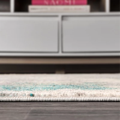 - Combining tones of turquoise, aqua, blue, and beige, this rug is a versatile addition to any color scheme