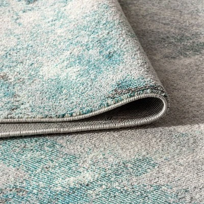 - The shades of turquoise, aqua, blue, and beige in this painterly rug create an effect as if this rug was water colored right onto the floor. The tranquil effect creates a serene retreat well suited to coastal cabins or modern mansions. And in durable power loomed polypropylene, the durability of this rug is built to withstand high traffic, kids, or even pets!