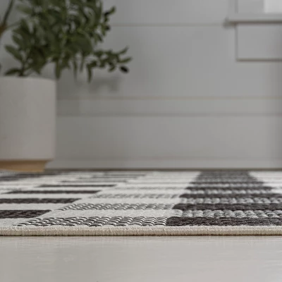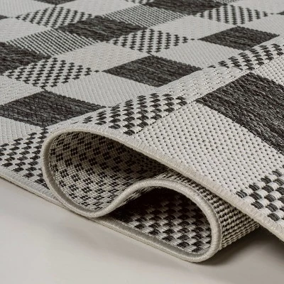 Our modern version of a gingham rug is inspired by traditional French Country designs. It’s made from durable polypropylene fibers woven into an updated geometric pattern. Use this easy-care rug outdoors on a porch, or in the bedroom, living room or dining room.
