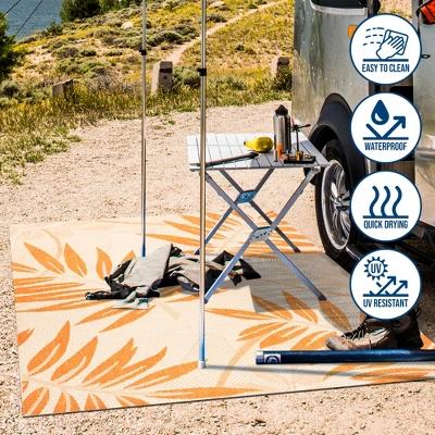 Whether you live in a tropical beach cottage or just love jungalow style, the palm leaf pattern of this rug brings the jungle home. Overlapping palm tree branches and jungle leaves create an elegant two-tone pattern. The pet-friendly and kid-proof low-pile design is perfect for the living room, dining room, kitchen, or porch.