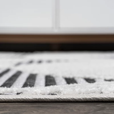 Inspired by Art Deco design, our jazzy geometric rug is power-loomed with a short pile. The all-over pattern is woven in a modern color palette. Add some graphic mid-century punch to your living room, dining room, entry, or bedroom with this easy-care rug.