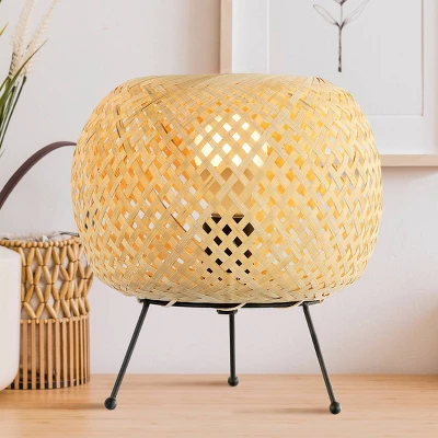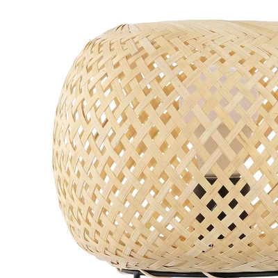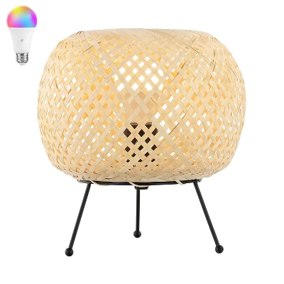 Retro design features natural rattan woven onto a sturdy black metal frame. Control the multicolor dimmable smart bulb using the JONATHAN Y mobile app, or use the handy in-line switch. This tropical lantern adds Bohemian style and soft, ambient lighting to any space. Eco-friendly 5W LED bulb included. Takes 1 bulb and compatible with TYPE “A” 40W or CFL 13W or LED 9W. Color Temperature: 2700K. CRI: 80. Before cleaning any lamp shade or fixture, disconnect the power source. Wipe with a soft, dry cloth. Avoid the use of chemicals and household cleaners as they may damage the finish.