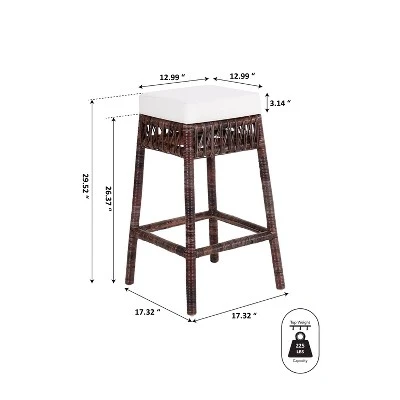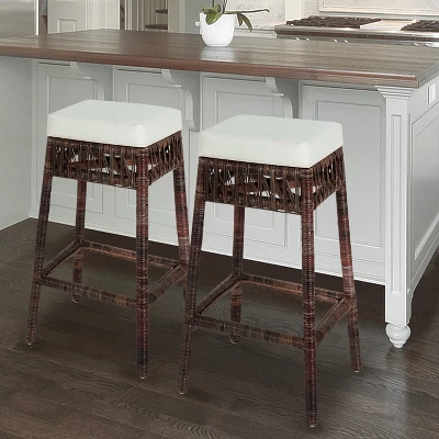 Our bohemian handwoven wicker barstool adds a stylish touch to your dining or bar area. The rattan legs and frame adds a farmhouse flare to any space it’s in. Topped with a comfortable cushioned seat and built-in footrest, there’s no need to forgo comfort for style.
