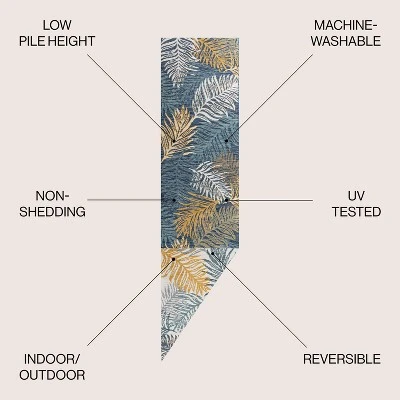 Whether you live at the beach or just love tropical style, the allover palm frond pattern of this rug adds a coastal vibe. Woven from durable synthetic fiber, the reversible design features overlapping palm tree branches. Use this family-friendly rug on the porch, or indoors in the living room, dining room or bedroom.