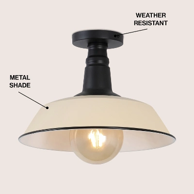 This vintage-inspired metal ceiling light is ideal for your modern farmhouse, rustic kitchen or industrial design – indoors or out. Features an Edison-style LED bulb inside a painted metal shade, accented by a decorative post. This ceiling fixture is perfect for the porch, entry, kitchen, bedroom, or hallway.
