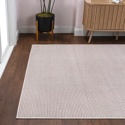 The low-key stripe pattern of this rug is the perfect backdrop for almost any traditional or farmhouse-inspired interior. The two-tone design has a modern, minimalist vibe that is woven from soft, durable yarn in a high-low pile that accentuates the pattern. Easy-care synthetic fibers make this rug a family-friendly choice too. Please note that variations in the rug’s appearance may occur when the fibers are brushed due to natural light reflection and weaving characteristics.
