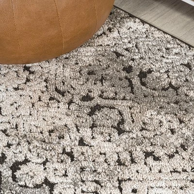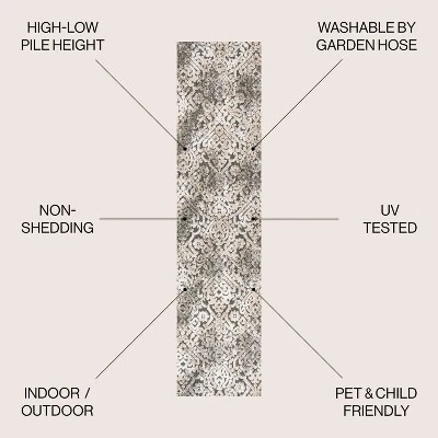 This unique rug combines shabby chic damask with modern glam for a distressed and overdyed look. The busy pattern is a family-friendly addition to the living room, dining room, bedroom, porch or patio. Made from pet-friendly synthetic fibers, this rug is easy to clean.