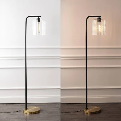 Modern design meets vintage chic in our stylish, minimalist floor lamp. A bright LED bulb provides plenty of reading light, softened by the ribbed glass shade. Use it with an LED dimmer switch to add ambiance to a living room, bedroom or library.