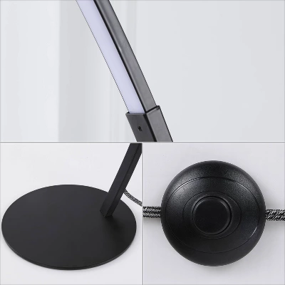 - Matte black metal is complemented by a frosted white plastic shade