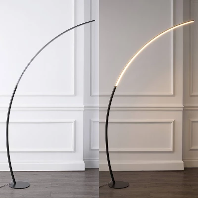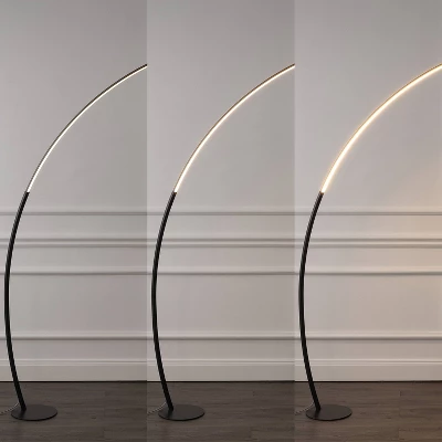 The slim arc of our minimalist floor lamp features dimmable, integrated LED bulbs that never need replacing. This modern lamp provides bright, clear light for reading, or use the dimmer for a moody ambiance. Add a contemporary touch to your living room, dining room or office.