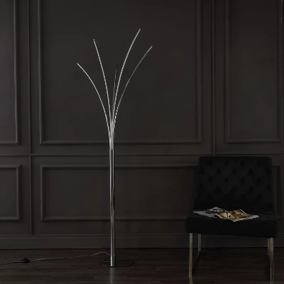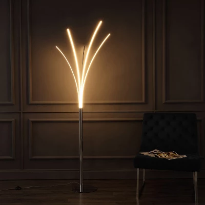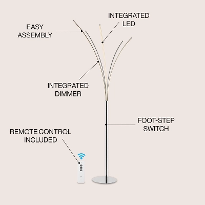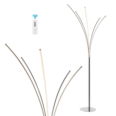 Set the mood for entertainment with the arching branches of our modern LED floor lamp. Minimalist style includes dimmable LED bulbs that are adjusted by a remote control and foot-step switch. This 71″ tall standing lamp provides both a reading and ambient light, and adds a contemporary touch to your living room, dining room, entry, or office.