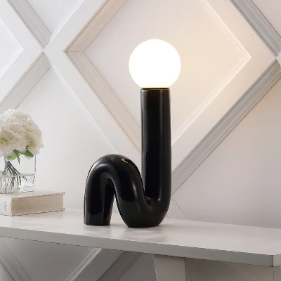 Create a groovy, retro vibe with our minimalist tube lamp. The sleek, spiraling ceramic base is topped by a frosted glass globe. An LED bulb provides bright, warm light for any contemporary interior.