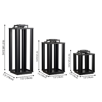 Light up the garden, pathways or even a special event with these modern solar lanterns. Set of 3 lanterns have metal frames and a solar cell on the top of each one. The tall, square design adds industrial flair to any space.