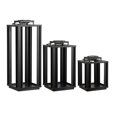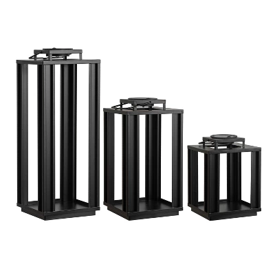 - Minimalist lantern frames are metal with a black finish