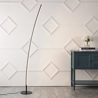 Our minimalist floor lamp adds contemporary style to the living room, dining room, bedroom or office. Our slightly curved, glowing design provides bright, clear light. The energy-saving, integrated LEDs will last 15 years or more.