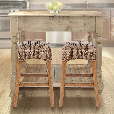 - The brown wash seat and light brown wooden legs will add a touch of cottage decor to your home; made by artisans, the color can be slightly different than shown