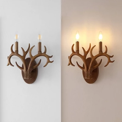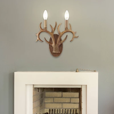 This classic antler wall sconce adds rustic style to your entry, dining room or bathroom vanity. Two-light design features curving faux antlers and vintage style candle sleeves topped with bright LED bulbs. Buy a pair to flank a mirror or painting, or illuminate a long hallway.