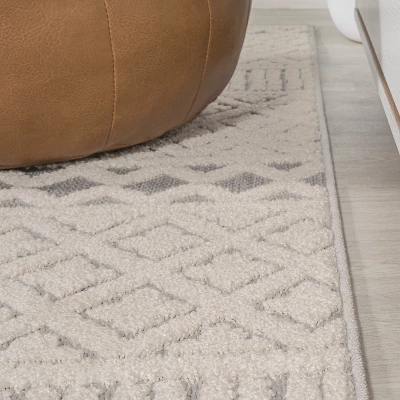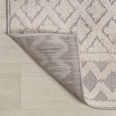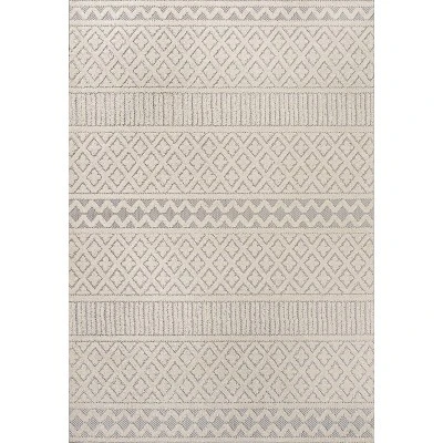 Inspired by Moroccan designs, our modern geometric rug adds graphic punch to almost any space, indoors or out. The two-tone, family-friendly design is a smart addition to your living room, dining room, bedroom, porch or patio. Made from pet-friendly synthetic fibers, this rug is easy to clean.