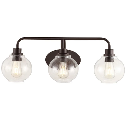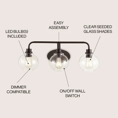 Bring on the vintage Parisian flair with our bistro-inspired wall light. Three LED bulbs in a clear glass globe provides plenty of light. Clean lines and a oil rubbed bronze finish add modern French style to your bath vanity, kitchen, hallway or entry.