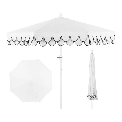 Stir up some midcentury glamor with this classic scalloped umbrella. It features a sturdy aluminum frame covered in durable outdoor canvas, and an auto-tilt mechanism. The double-scalloped edge makes this umbrella chic enough for cocktails around the pool or an outdoor dinner party.