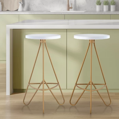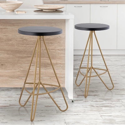- The stool’s sleek gold metal legs and black colored seat infuse modern decor into any space it’s in