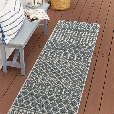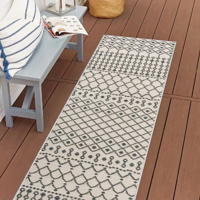 Inspired by vintage Moroccan rugs, our reversible rug features a geometric diamond and trellis pattern. It’s made from durable synthetic fibers woven into a crisp pattern. Use this easy-care rug outdoors on a porch, or in the bedroom, living room or dining room.
