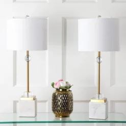 30″ (Set Of 2) Dawson Marble/Crystal Table Lamp (Includes LED Light Bulb) White – JONATHAN Y