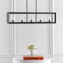 Light Levi Industrial Farmhouse Iron Linear LED Pendant Oil Rubbed Bronze – JONATHAN Y