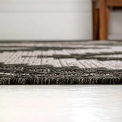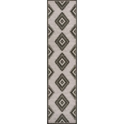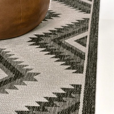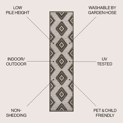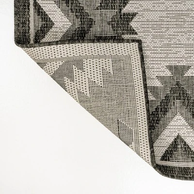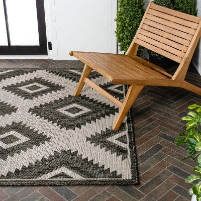 Inspired by vintage Moroccan and Southwestern motifs, this rug features a traditional geometric diamond pattern. It’s made from durable synthetic fibers woven into a bold, updated design. Use this easy-care rug outdoors on a porch, or in the bedroom, living room or dining room.
