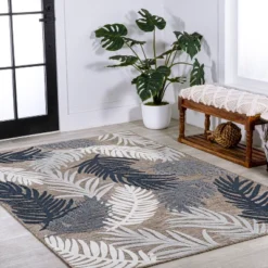 JONATHAN Y Calypso Coastal Casual Palm Frond Reversible Machine-Washable Indoor/Outdoor Area Rug