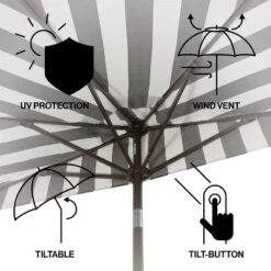JONATHAN Y Tracy 9 Ft. Classic MidCentury Scalloped Fringe Market Patio Umbrella With Auto-Tilt, Crank, Wind Vent And UV Protection