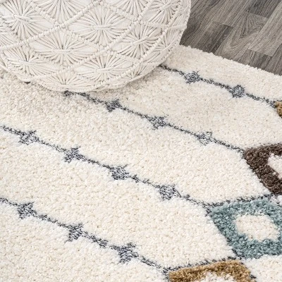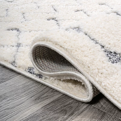 Inspired by vintage Moroccan rugs, this plush trellis rug features geometric diamond borders at each end. Anchor a modern space with the two-tone design, or add Bohemian Inspired flair to a bedroom, living room, dining room or home office. This neutral, easy-care rug adds bold pattern and softness to mid-century, transitional and modern interiors.
